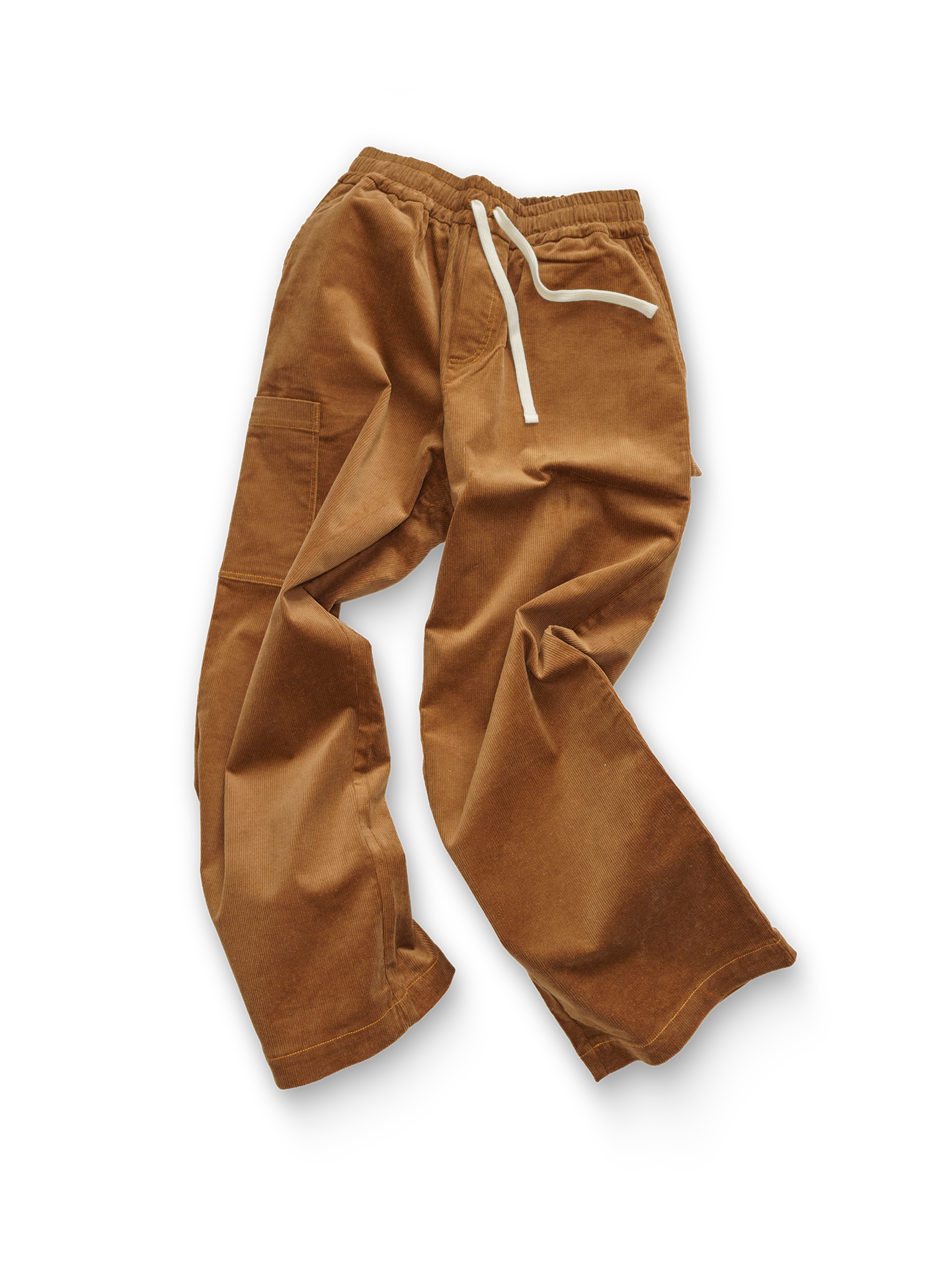 Вельветовые брюки свободного кроя из хлопка. Вдохновлены эстетикой рабочей одежды. Два кармана сзади и один боковой. Эластичная резинка на шнурке. Сделано в России
