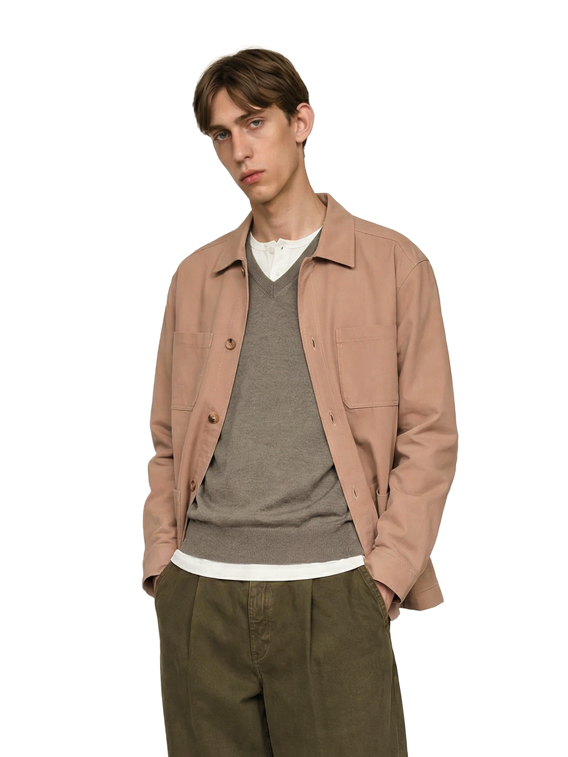 Куртка-рубашка регуляр/свободного кроя из плотного хлопкового твила. Отложной воротник и длинные рукава с манжетами. 4 накладных кармана. Застежка на пуговицы. Выбирайте на размер больше, если хотите посадку свободней